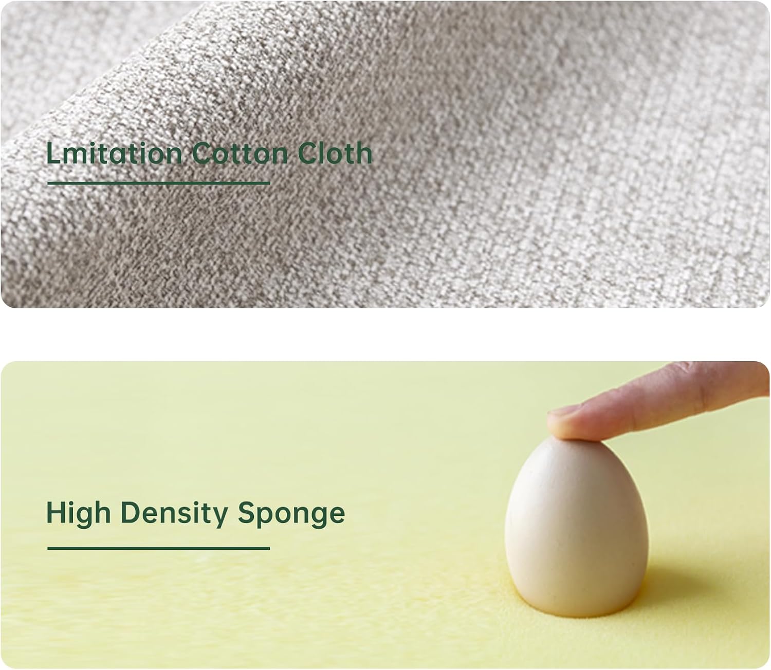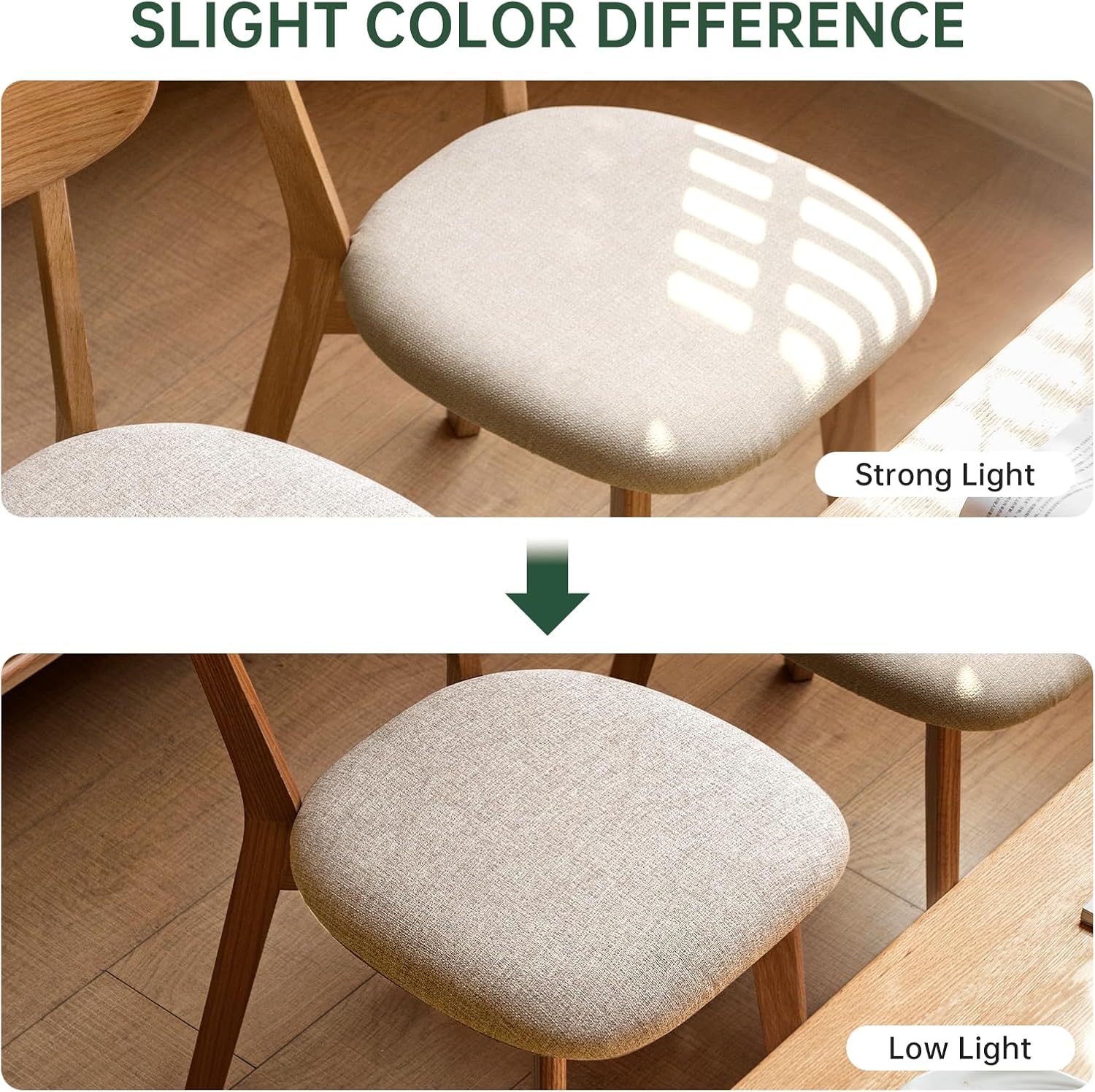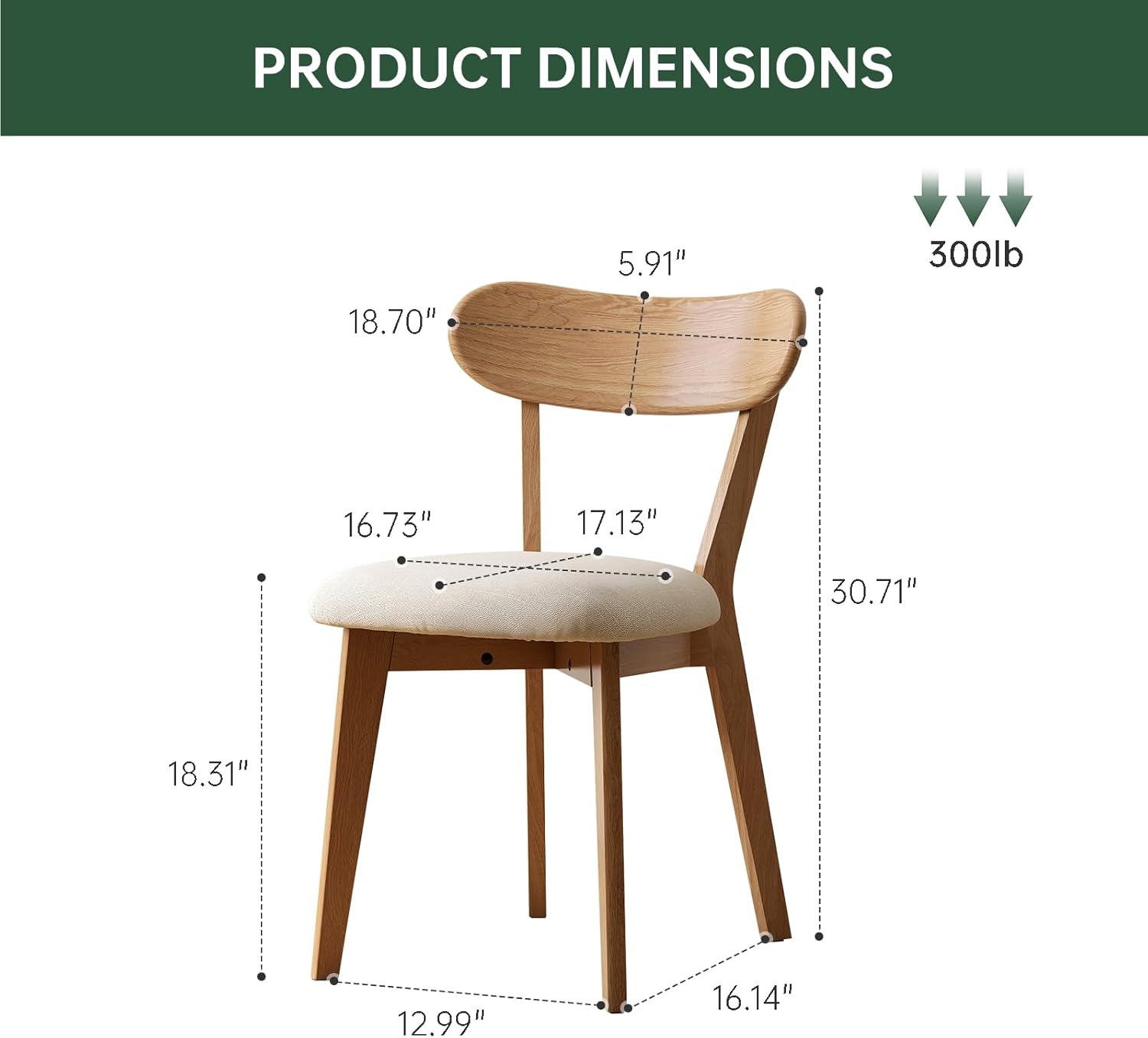 100% Solid Oak Dining Chairs, Mid Century Modern Dining Chair with Curved Backrest, Fabric Upholstered Dining Chairs for Kitchen, Study, Living Room (4, Original Wood-Pear White Cushion)