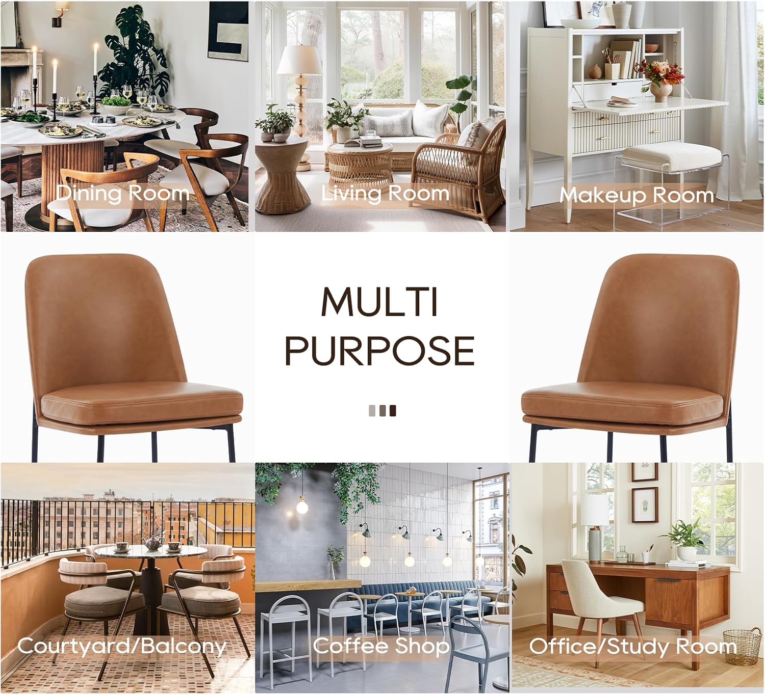 COLAMY Modern Dining Chairs Set of 6, Faux Leather Upholstered Dining Room Chairs Kitchen Chairs Dinner Chair with Curved Back and Metal Legs, Brown