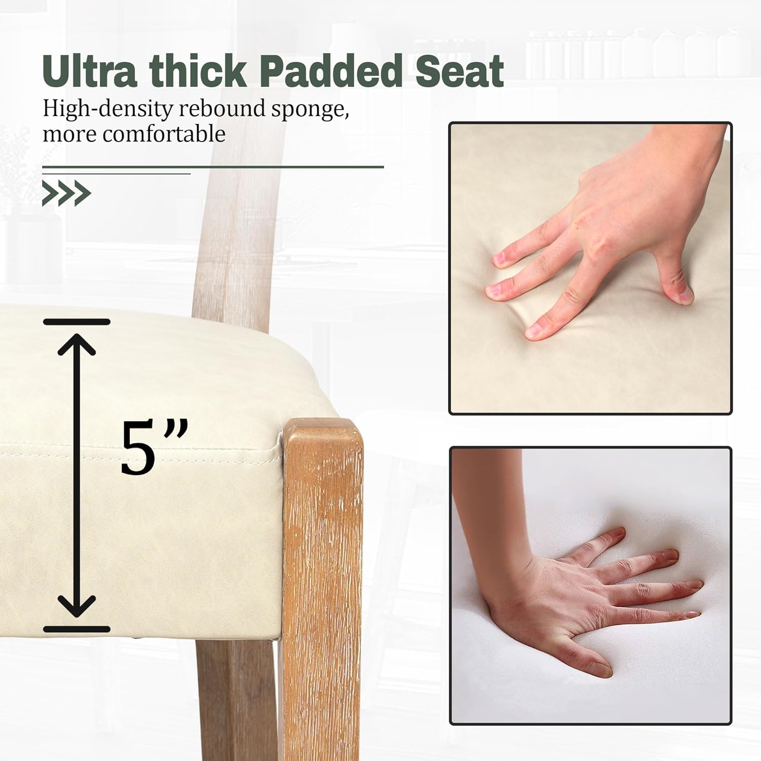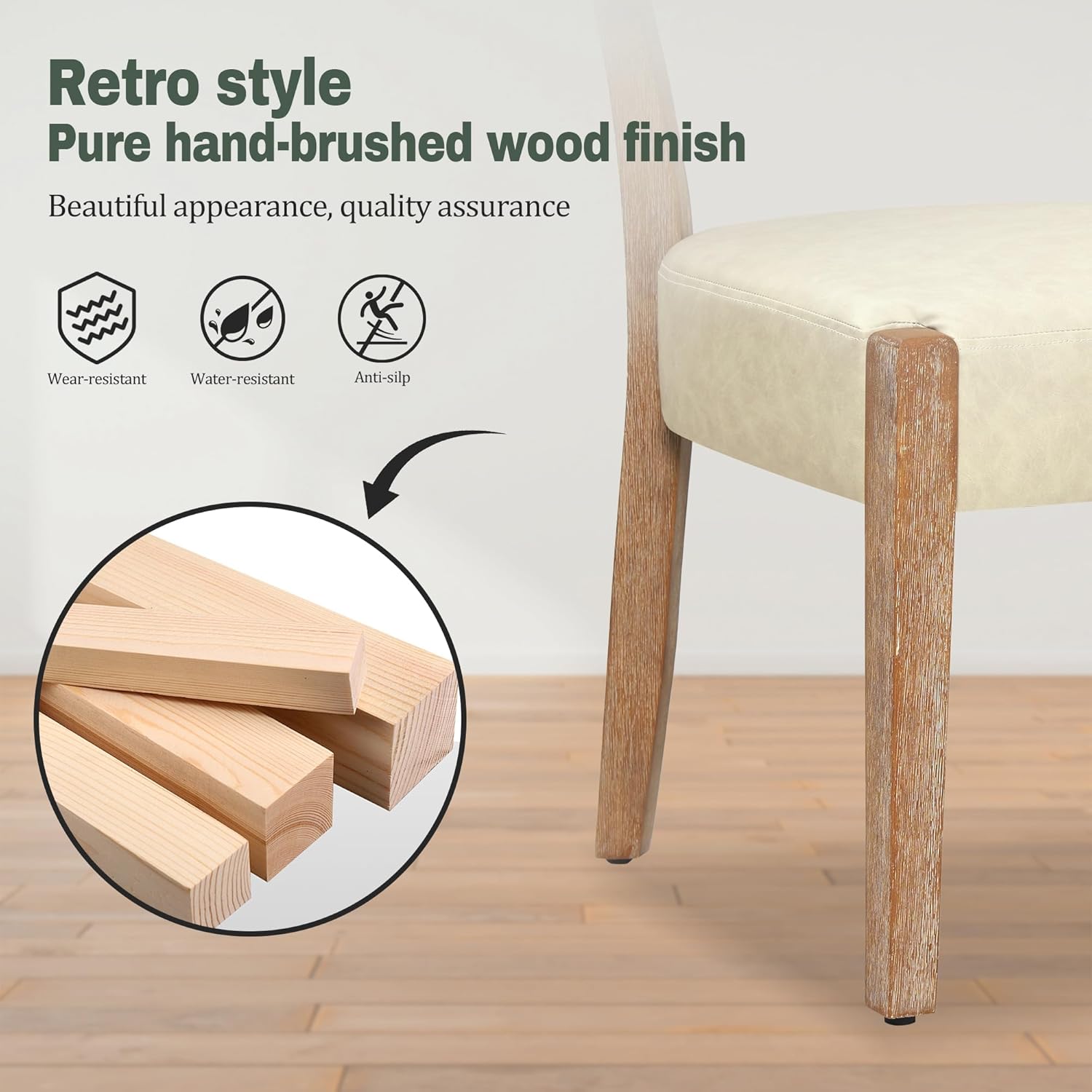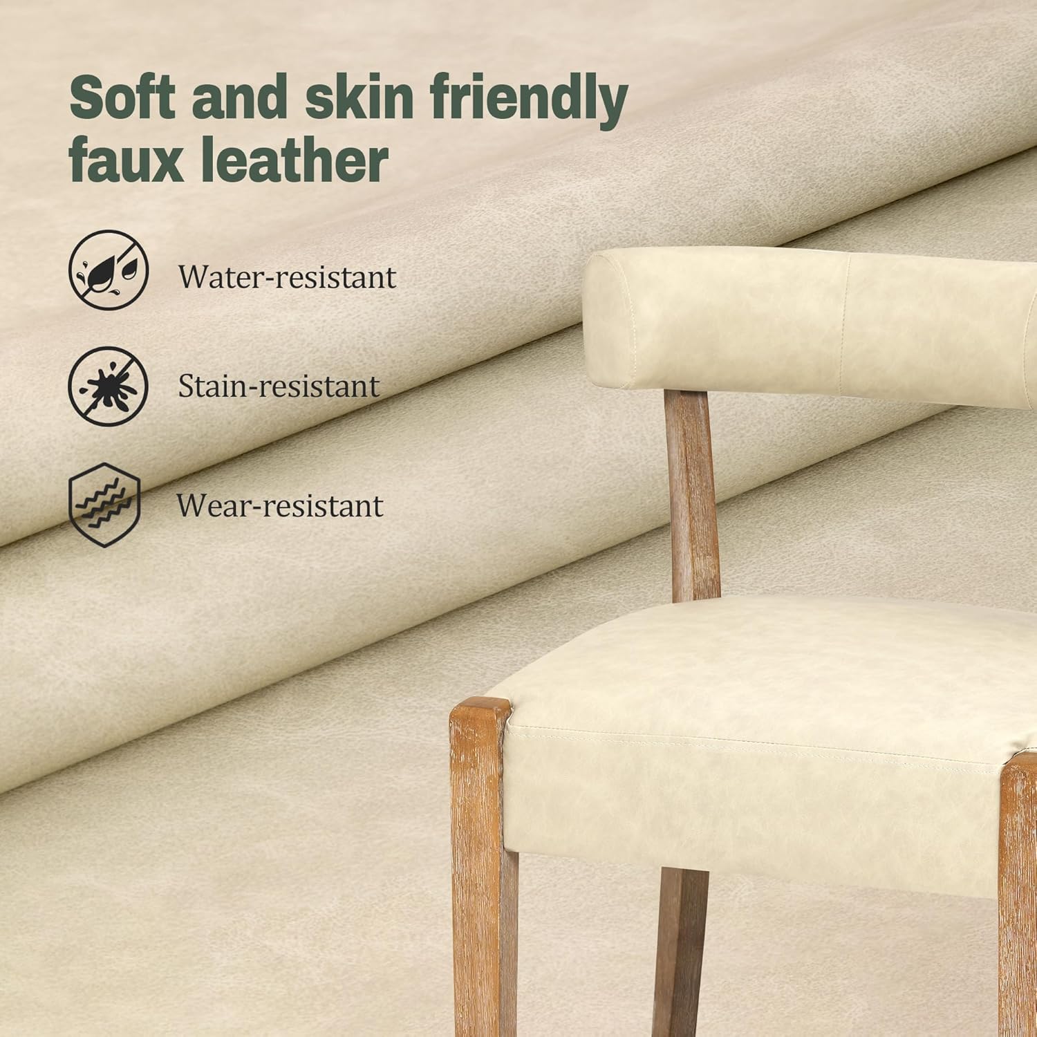 Faux Leather Dining Chairs Set of 4 Upholstered Kitchen & Dining Room Wooden Chairs Mid Century Modern Dining Chairs Low Back, Beige