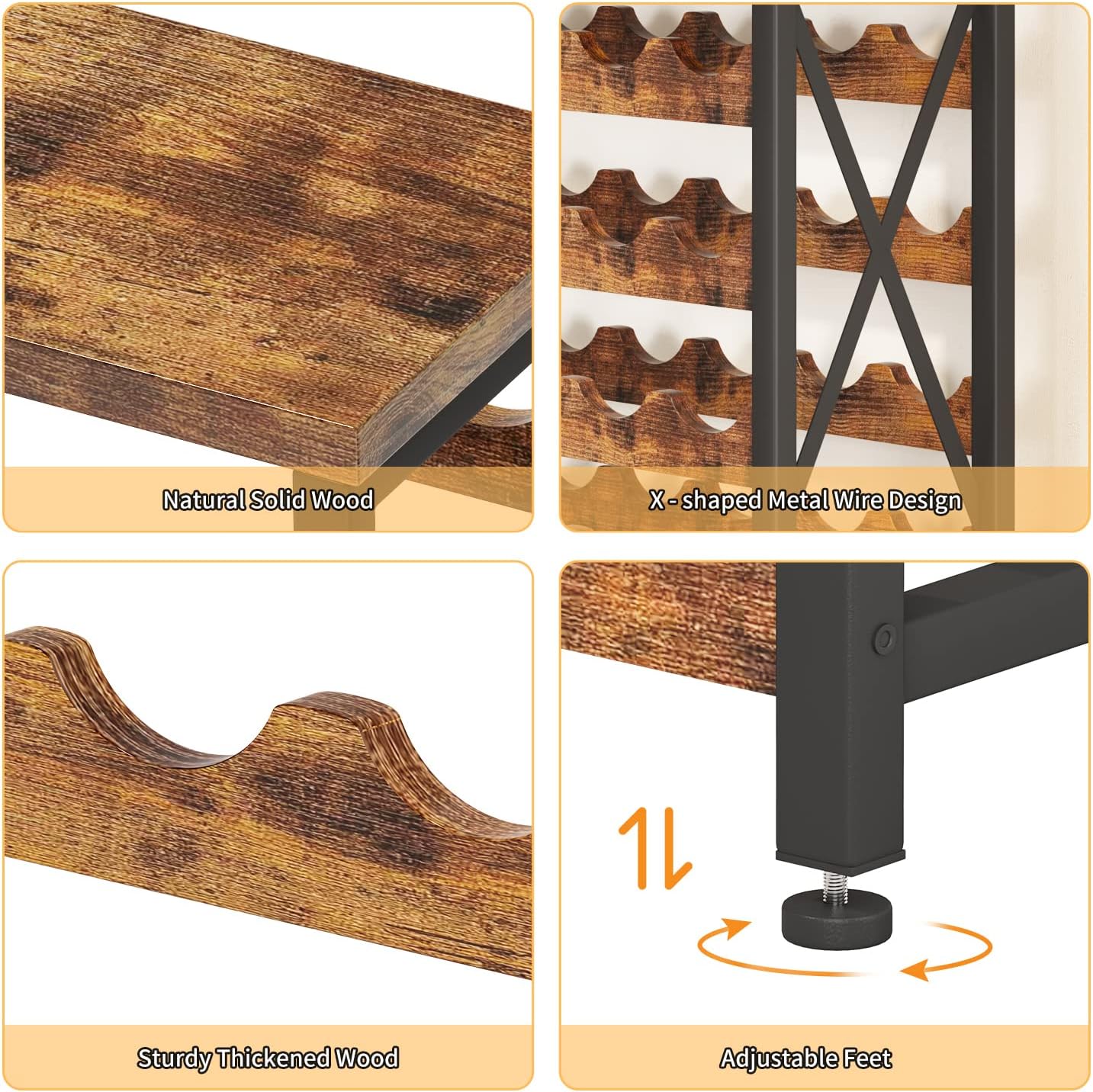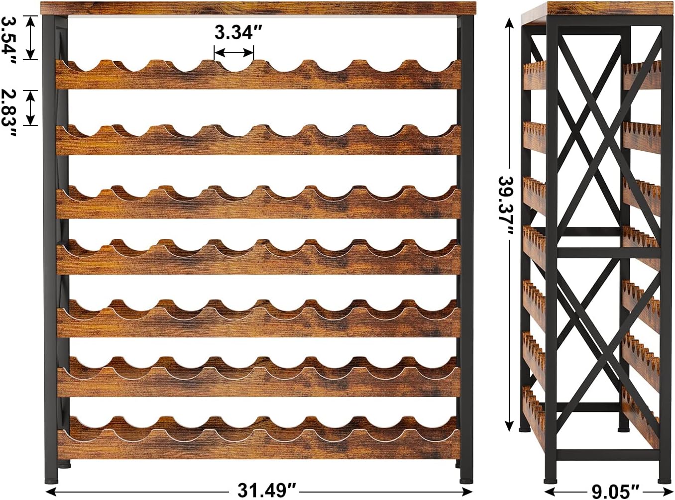 Homeiju 56-Bottle Wine Rack Freestanding Floor, Wooden Wine Storage Shelf, Stackable Wine Rack with Tabletop for Living Room,Kitchen or Wine Cellar