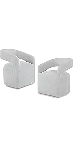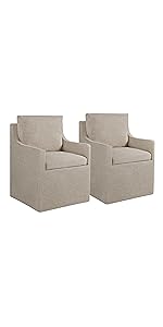 Upholstered Dining Chair with Casters Wingback Modern Side Armless Deskchair with Rollers for Diningroom Bedroom Livingroom Reading Room,Linen,2 Box