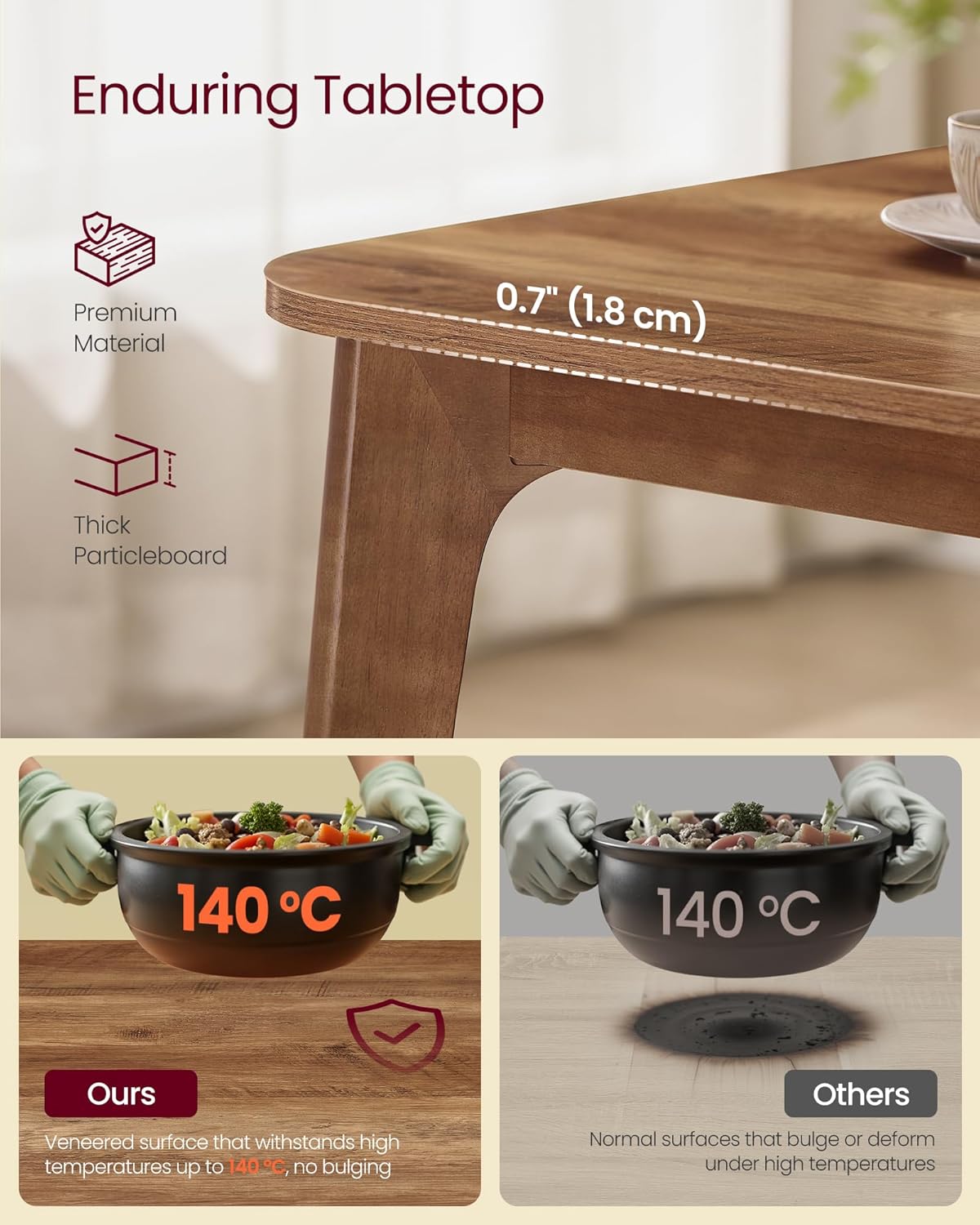 VASAGLE Dining Table for 4/6/8, Extendable Kitchen Table with Tapered Legs, Curved Transitions, for Dining Room, Kitchen, Home Office, Honey Brown UKDT090K01V1