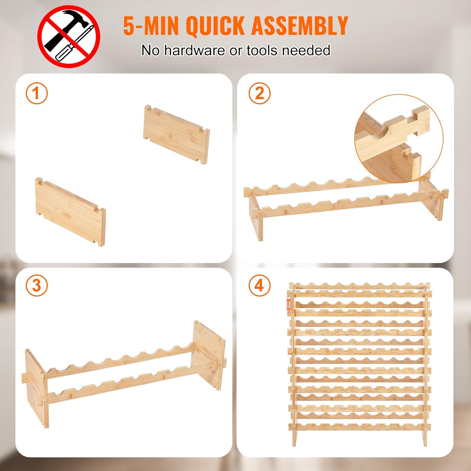 VEVOR 72 Bottle Upgrade Modular Wine Rack, Continuously Store Pinot Bottles, 8-Tier Bamboo Wood Storage Rack, Floor Freestanding Wines Holder Display Shelf, Wobble-Free Shelves for Kitchen Bar Cellar
