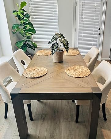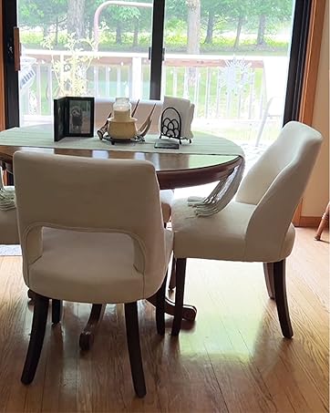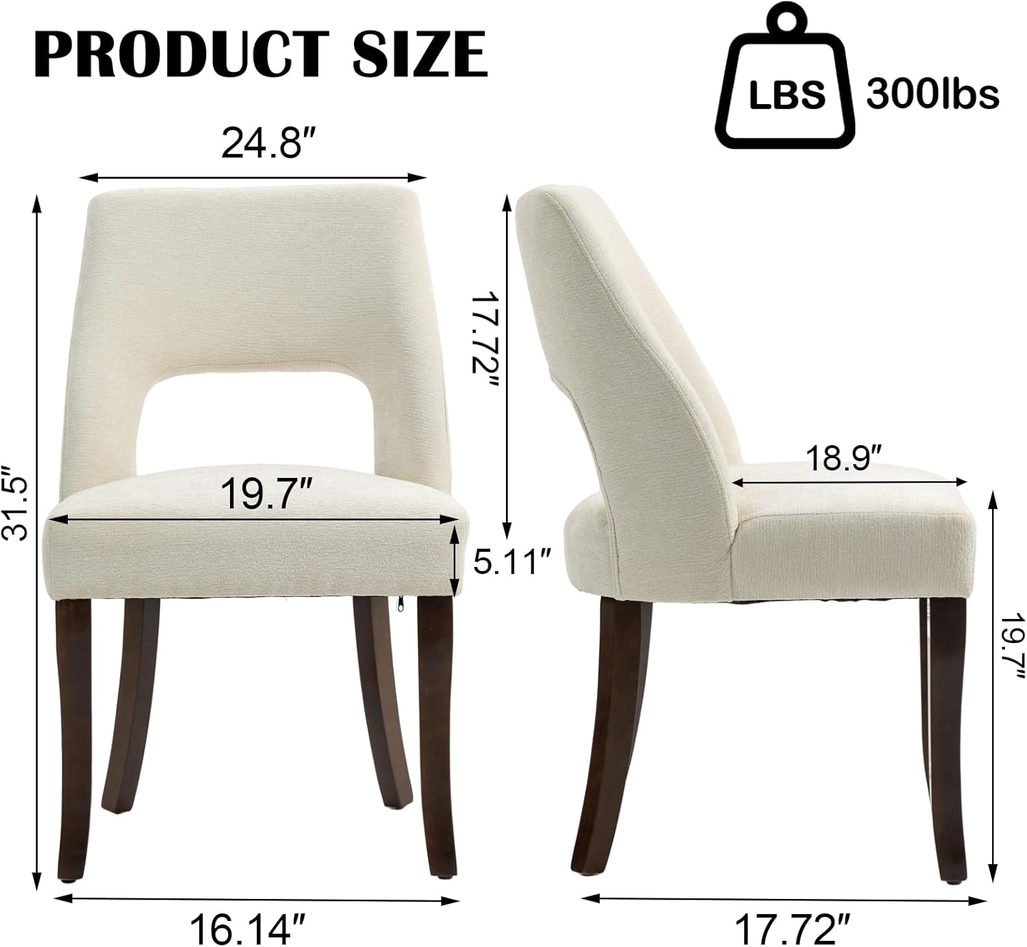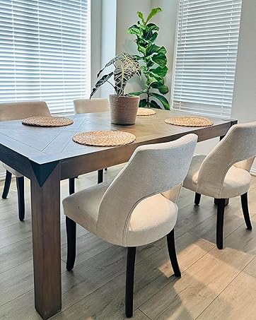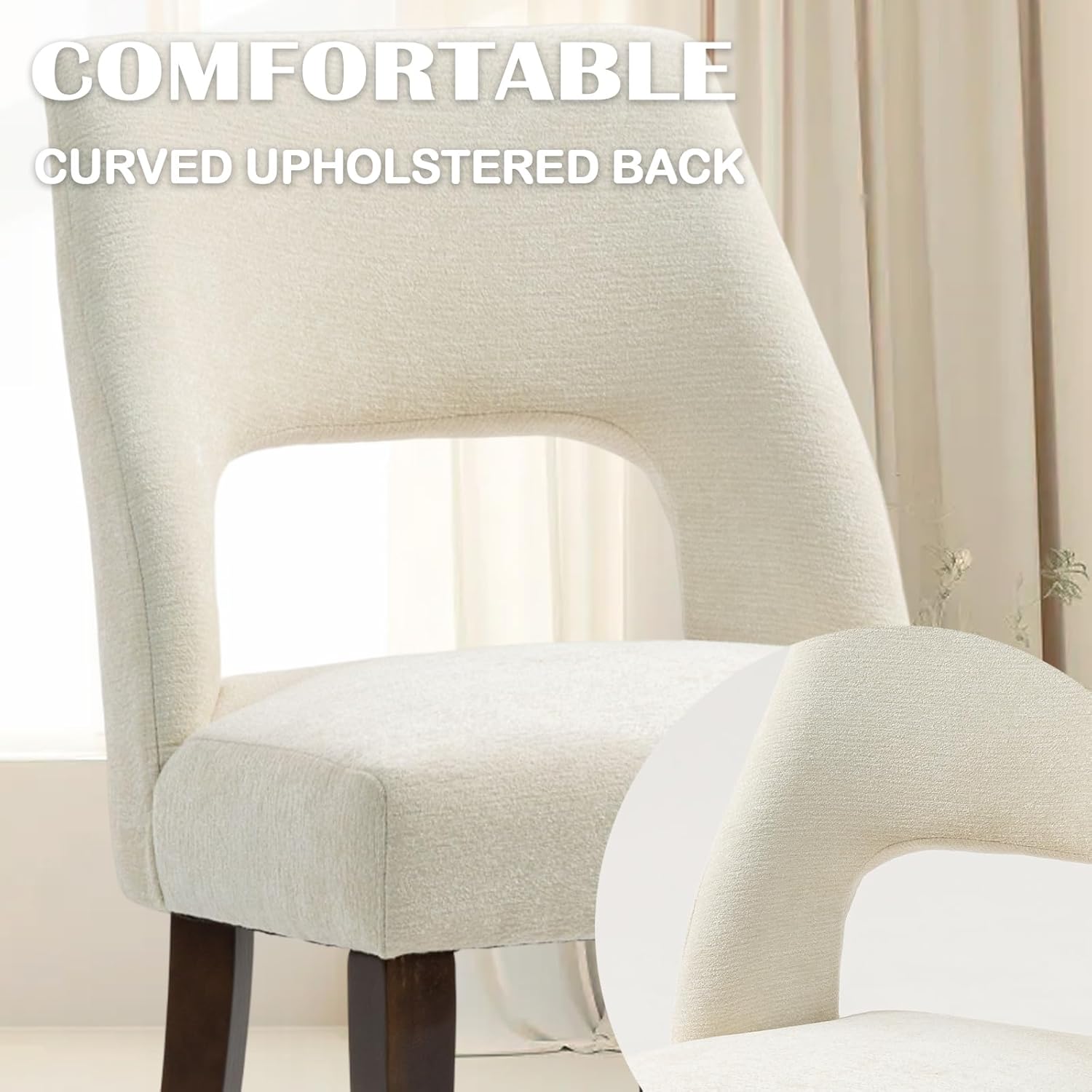 Wooden Dining Chairs Set of 4, Modern Fabric Upholstered Kitchen and Dining Room Chairs, Farmhouse Dining Chair with Solid Wood Legs, Beige